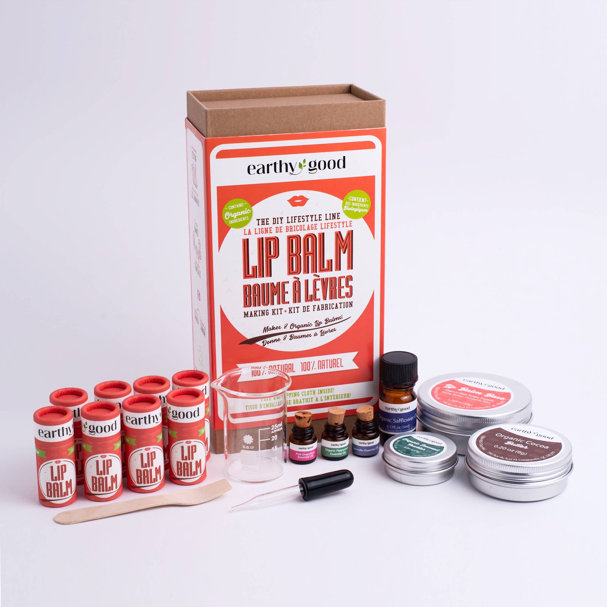 Make your own natural lip balm with this eco-conscious DIY kit from Earthy Good. Designed for adults who love clean beauty and mindful creativity, this kit makes 8 custom lip balms using 100% organic, plant-based ingredients — no synthetics, no plastic, no fuss.