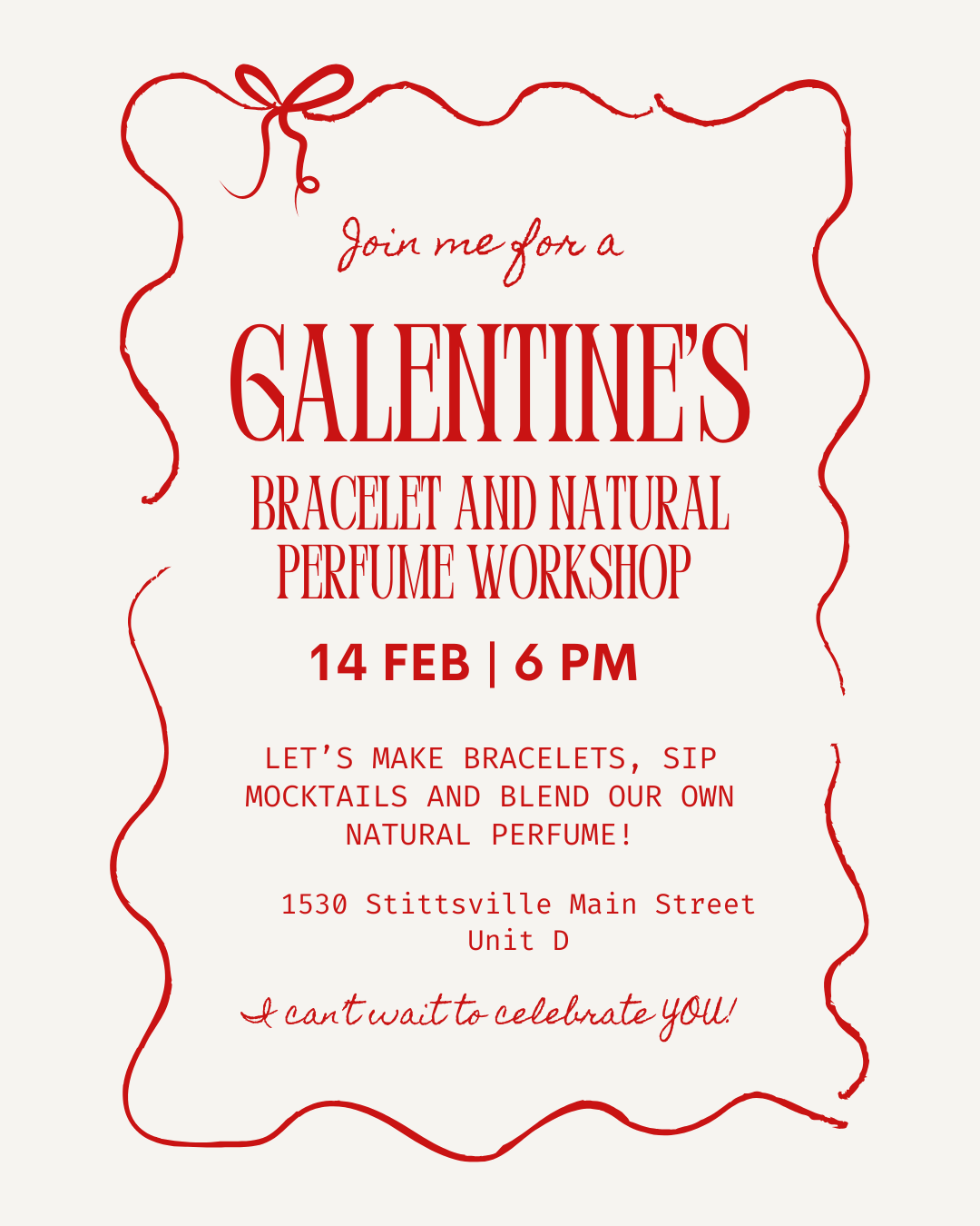 February 14th 6-8pm The Workshop- 1530 Stittsville Main Street Unit D
